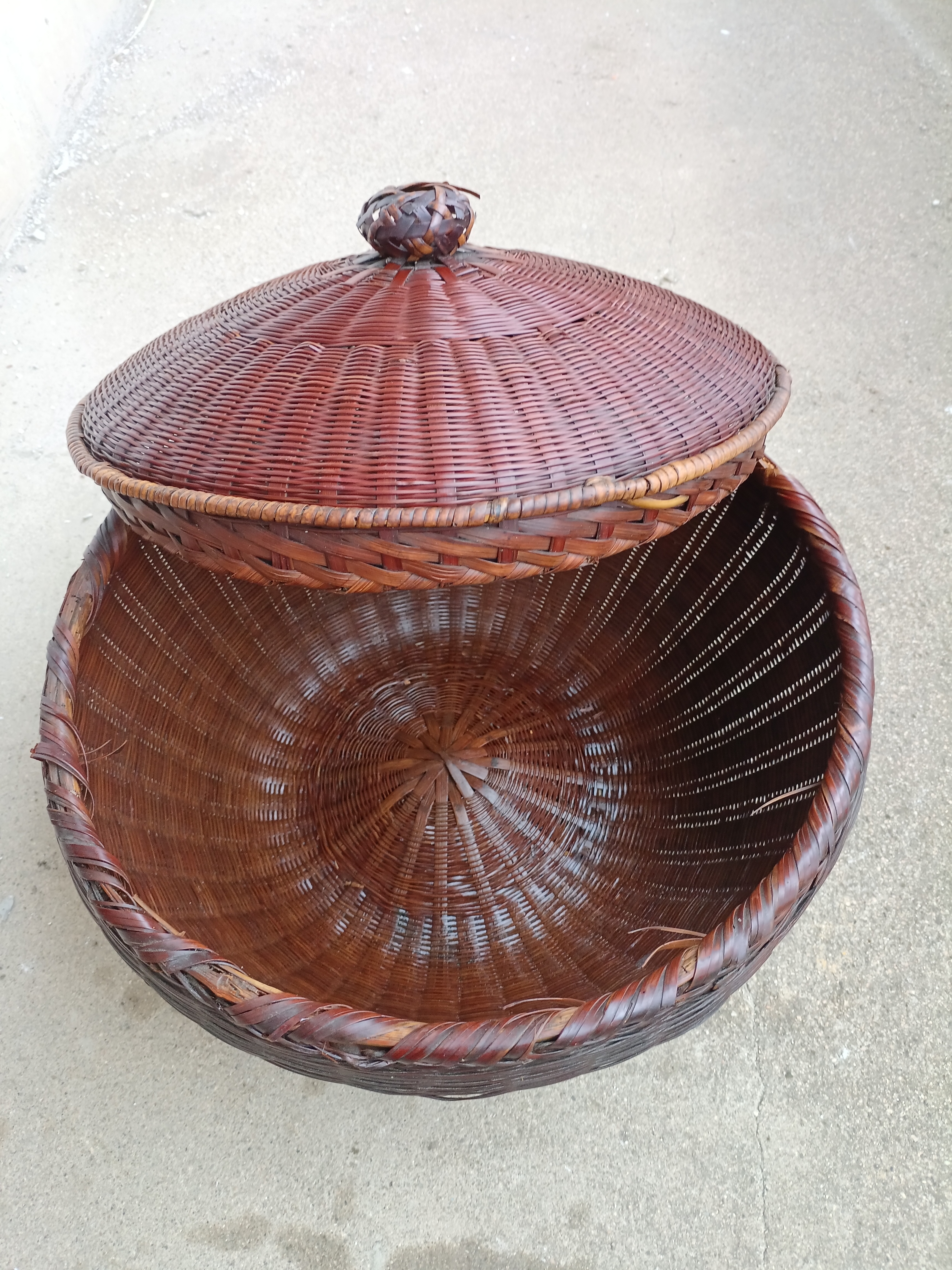 用竹子编制的工艺用品。过去街上到处都有竹制品卖,但随着时代的变迁,竹制品已逐步